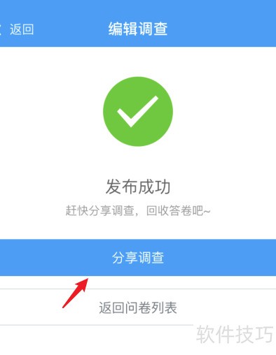 7、 发布问卷后,点击分享按钮即可。