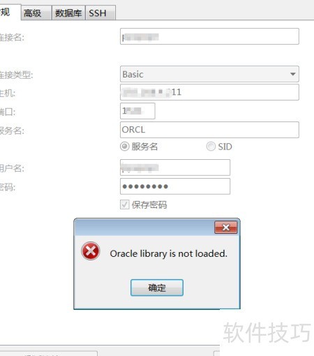 5、 第三步:连接时出现oracle库未加载错误提示。