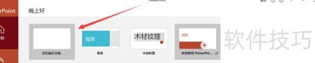2、 在PPT界面中,点击空白处,选择新建空白文档即可开始创建。