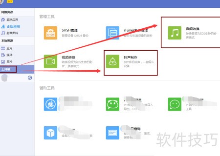 3、 打开工具箱可找到铃声制作与音频转换功能。铃声制作用于创建全新铃声,音频转换则可将其他格式的音频文件转为m4r格式,便于设置为手机铃声。