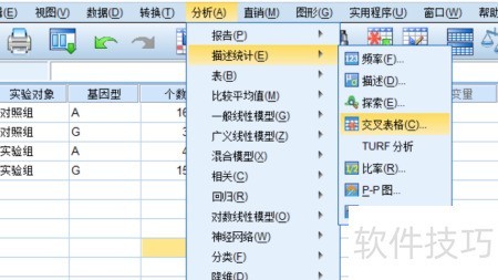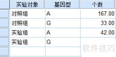 2、 若想分析某SNP位点A/G在对照组与实验组中的频率是否存在显著差异,可使用卡方检验。接下来,通过SPSS软件操作,轻松完成χ?检验,帮助判断两组间基因型分布的差异情况。