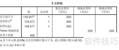 16、 SPSS会在表格下方注释中提示是否存在理论频数小于5的情况,并标明最小理论频数,便于用户选择合适的检验方法。