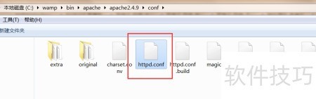 1、 进入Apache安装目录,查找并打开conf文件夹中的httpd.conf配置文件。