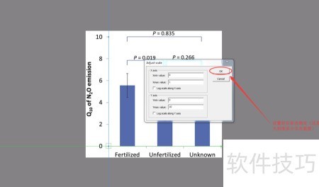 3、 在菜单栏中选择-,此时光标将变为十字形。首先设置横轴:在坐标轴交点处单击,确定横轴起点(可参考右下角窗口中的坐标对齐),然后在横轴末端再次单击,设定终点。根据实际图像范围输入横轴的最小值与最大值。接着以相同方式设置纵轴,在纵轴起始点和顶端分别单击,设定其范围,并输入对应的最小值和最大值,完成坐标轴的标定。