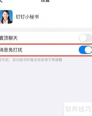 6、 开启消息免打扰功能后,钉钉小秘书的推送将不再提醒。