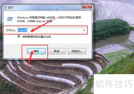 2、 打开运行窗口,输入regedit后按确定进入注册表编辑器。