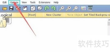 3、 在界面左上角找到option选项,若无法定位可参考图示。