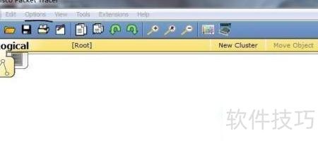 6、 启动Cisco Packet Tracer软件,查看标题栏中的各项功能选项。