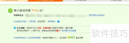 12、 下单并完成支付宝付款后,拍下淘宝商品即可看到付款成功的提示页面,这表示已顺利完成购买。同时,淘金币抵扣现金的操作也同步完成。关于淘金币的使用方法,以及如何在淘宝购物时用淘金币抵现,以上内容已作详细介绍。