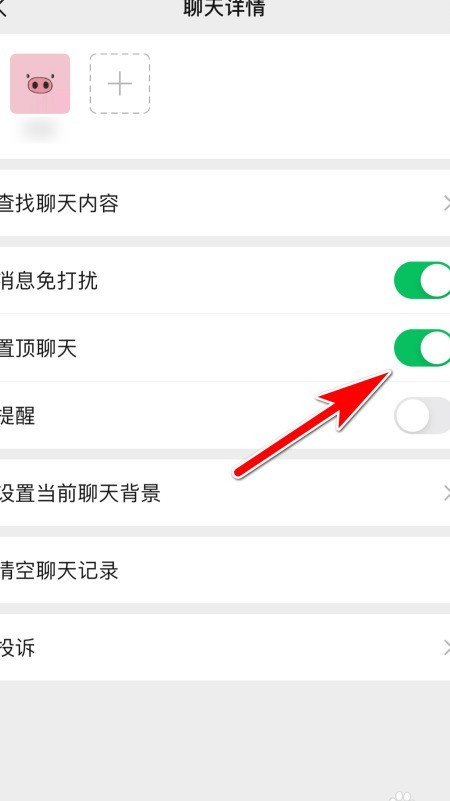 8、 开启开关,轻松置顶好友聊天窗口。