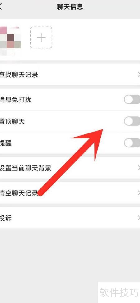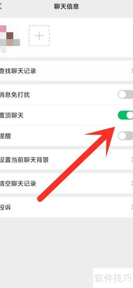 5、 开启置顶聊天旁边的开关。