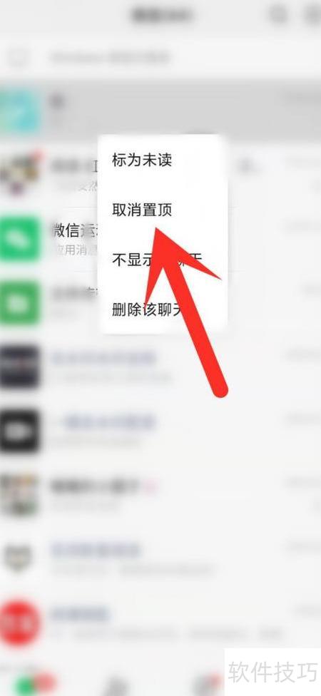 6、 置顶后长按聊天框即可取消置顶。