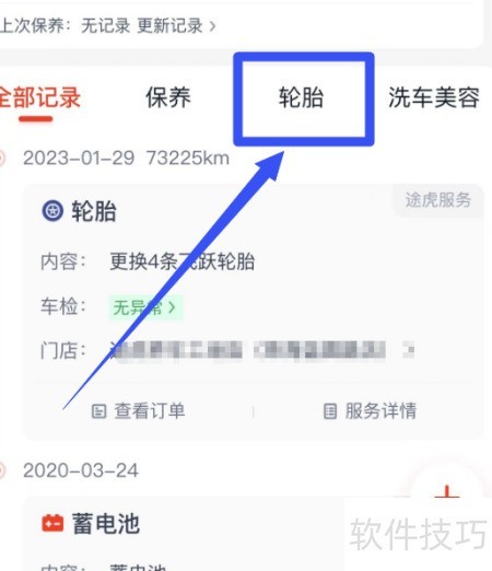 打开途虎养车APP,进入车辆详情页即可查看轮胎养护记录。