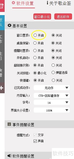 3、 在基本设置里开启窗口置顶功能即可。