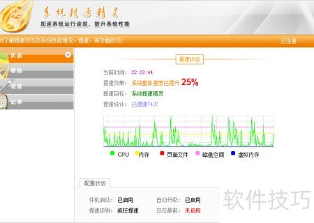 1、 安装系统提速精灵软件后,可自动优化电脑性能,提供普通提速与疯狂提速两种模式,轻松提升运行速度。