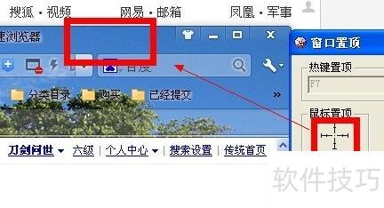3、 按F7快捷键,或用鼠标从鼠标置顶处拖至目标窗口边框,即可实现置顶操作,具体效果所示。