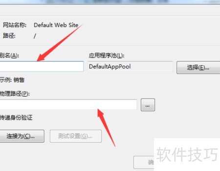 2、 在添加应用时,输入别名并设置物理路径为程序所在位置。