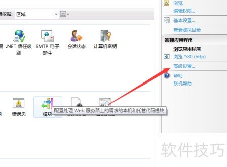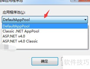 6、 进入高级设置界面,在应用程序池中选择对应选项。