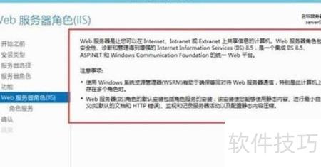 3、 配置IIS角色,添加Web服务器功能,完成安装向导设置。