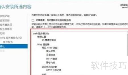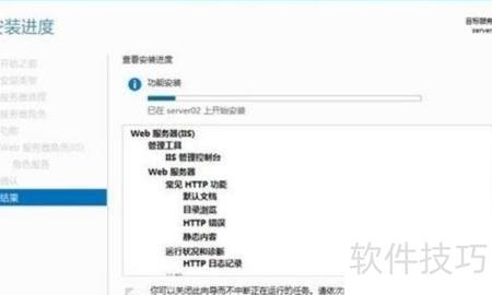 2、 配置角色服务,选择所需功能并完成安装向导。