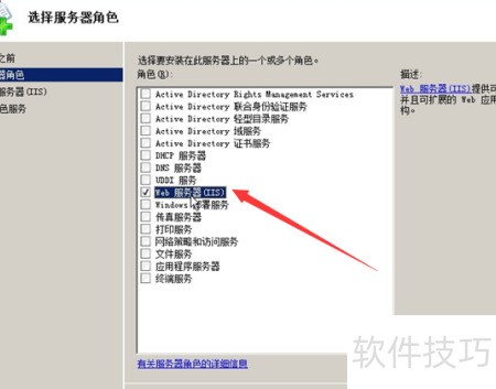 3、 进入文本服务器选项,选中Web服务IIS,然后点击下一步继续操作。