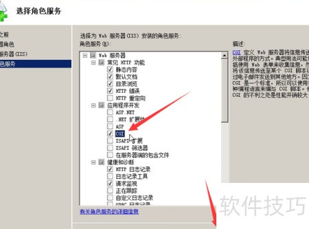 4、 选择所需角色服务,可多选,勾选CGI后点击下一步,完成安装。