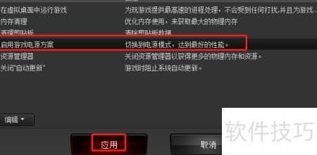 4、 勾选启用游戏电源方案前的方框,点击下方应用按钮完成设置。
