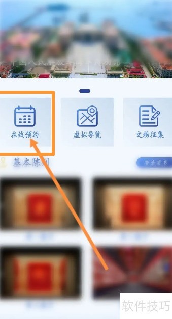 1、 打开手机军博应用,点击首页的在线预约功能即可进入预约页面。