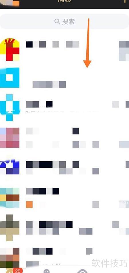 1、 打开手机QQ应用,进入消息主界面后,向下拉动屏幕即可查看内容。