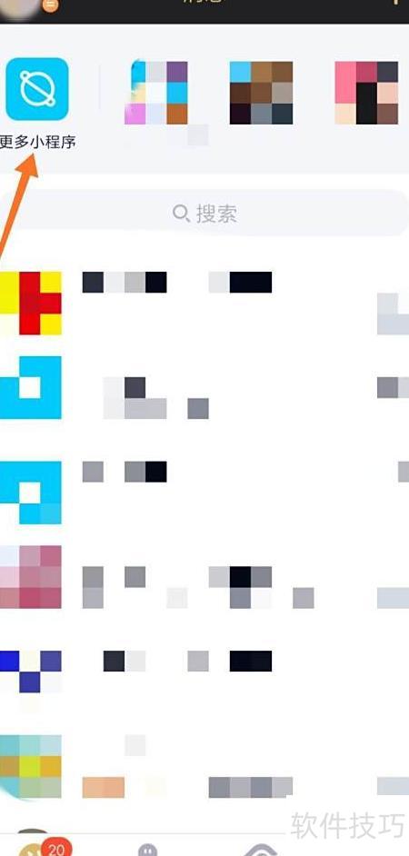 2、 下拉页面可见QQ小程序入口,点击箭头所指的更多小程序即可进入。