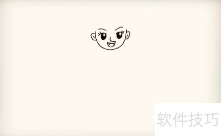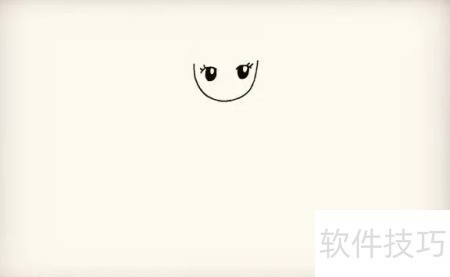 1、 先勾勒出一道弧线,作为记者的脸部轮廓,再画上带有高光的圆眼睛和睫毛。