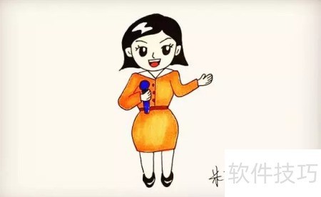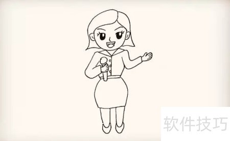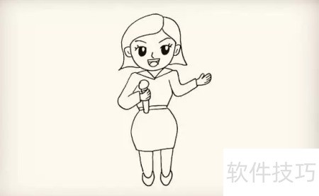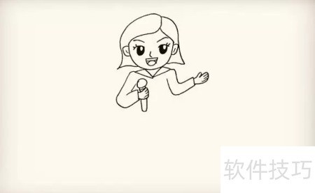 6、 接着描绘她的手臂,注意朝向,另一只手握着话筒,请同学们认真观察。