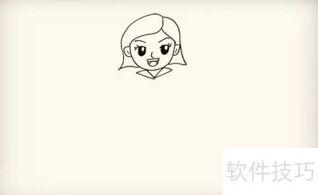 3、 继续绘制她的耳朵,注意保持左右对称。