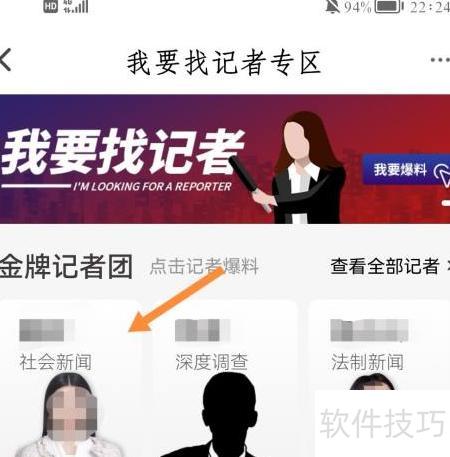 1、 进入应用首页,滑动中部导航至第二页,点击直通记者-一键投诉维权即可开始操作。