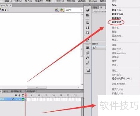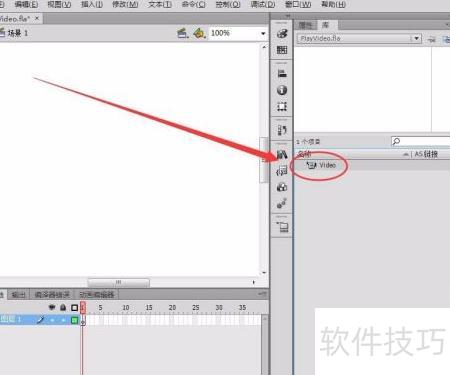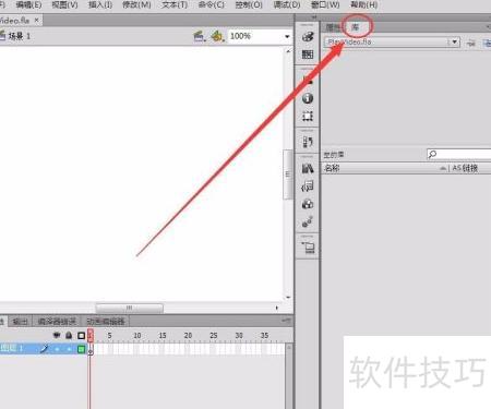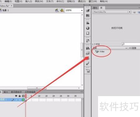 10、 视频文件已出现在库面板中,但通过此方式创建的视频需借助ActionScript代码控制,方可在Flash中实现播放。