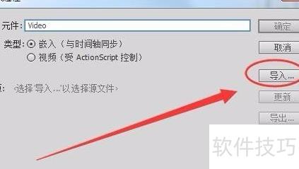5、 打开视频属性对话框,在元件栏输入名称,类型选择嵌入。