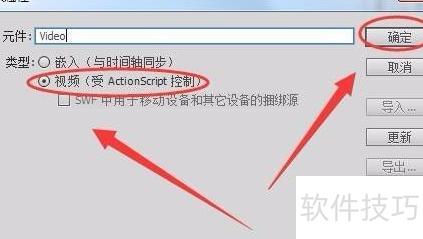 9、 在视频属性窗口里,选择视频(ActionScript控制)类型,然后点击确定按钮完成设置。