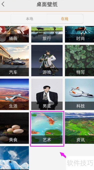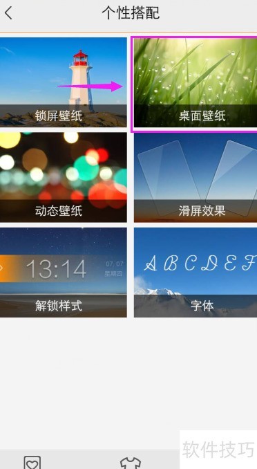 3、 进入主页,点击上方桌面壁纸即可设置,操作所示。