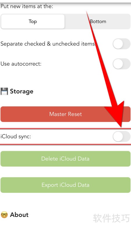 3、 当iCloud Sync后的圆点变成绿色时,表示List To do的iCloud同步功能已成功开启并启用。