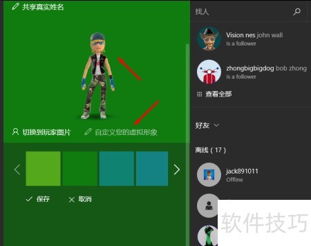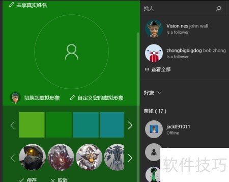 在Win10的Xbox应用里,可自定义设置个人Xbox虚拟形象。