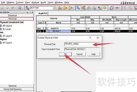 11、 输入特殊线宽的类别名称,如POWER_12MIL,确认后逐一添加所需约束规则。