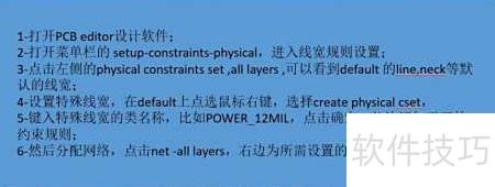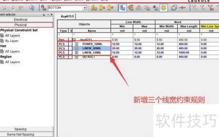 5、 输入特殊线宽的类别名,如POWER_12MIL,确认后逐一添加所需约束规则。