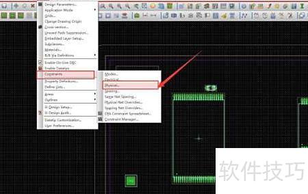 2、 进入菜单栏,选择 setup-constraints-physical,进行线宽规则的配置。