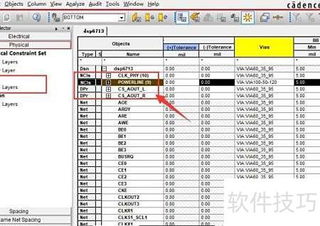 3、 第三步,在左侧选择物理约束设置中的所有层,可查看默认的线宽参数,包括走线、引脚等各项默认数值,便于后续设计调整与参考。