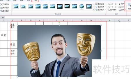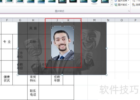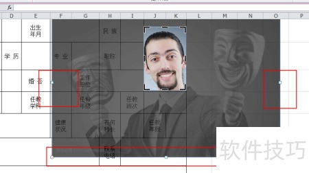 6、 调整照片大小至与表格位置匹配。