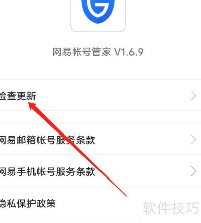 打开安卓版网易账号管家APP,进入关于页面即可查看并更新软件版本。