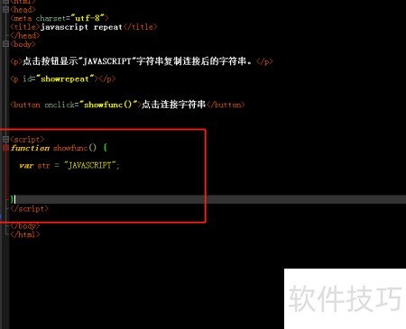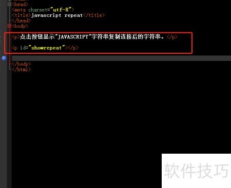 2、 创建两个段落元素,将第二个用作展示repeat方法输出的容器。