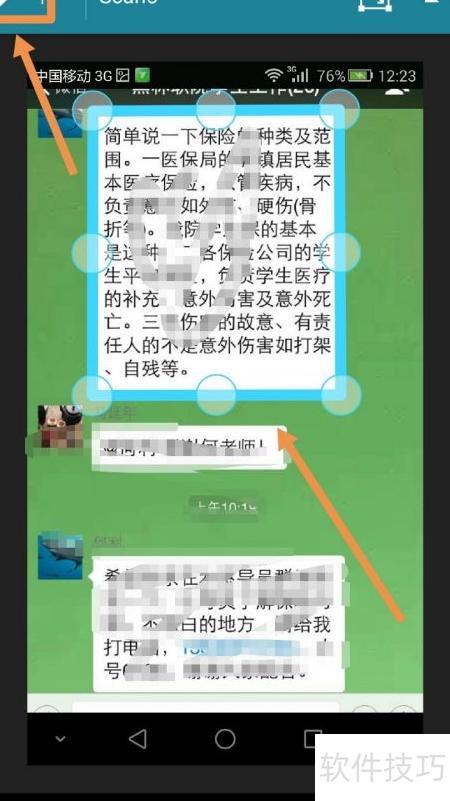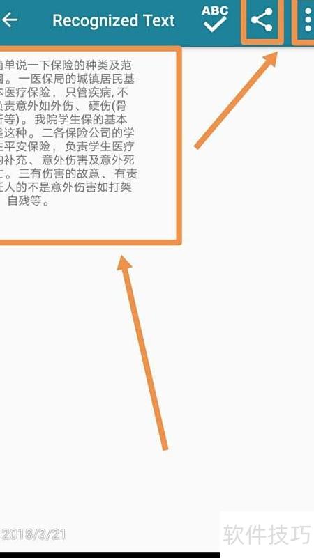 6、 识别出的文字可点击滑动选中,选中后通过上方分享图标即可分享内容。