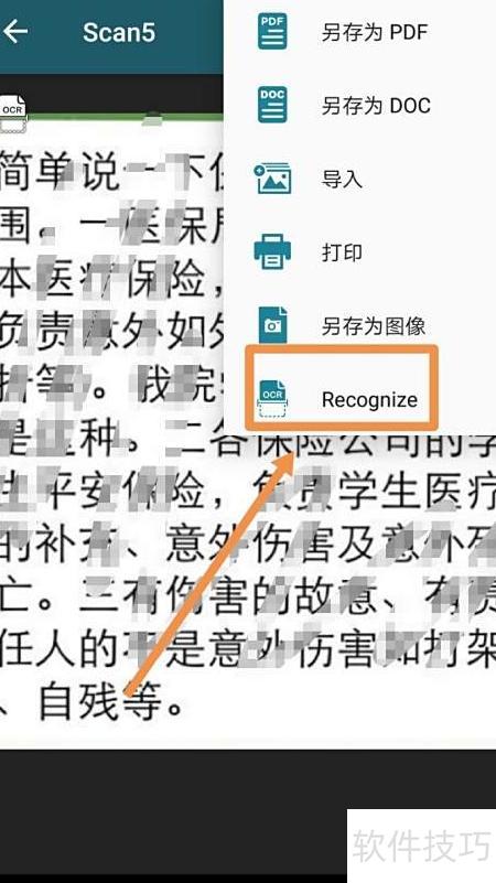 5、 点击弹出菜单中的识别命令,应用将自动扫描图像文字,已识别部分会以黄色高亮显示。