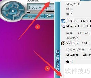 2、 在网络媒体播放器界面,右键单击播放器,选择弹出菜单中的选项即可。